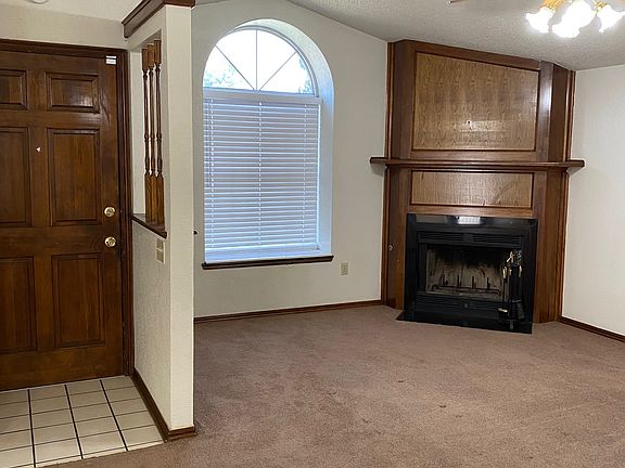 The **spacious living area** boasts a cozy **fireplace** and opens to a welcoming **dining area** perfect for gatherings.