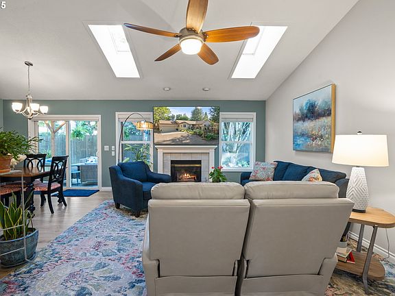 Tucked away off the street for exceptional privacy, this single level retreat offers the perfect blend of comfort, style, and convenience. Surrounded by lush landscaping and mature trees, the home feels like a private sanctuary while remaining close to West Linn’s dining, shopping, and parks. Inside, discover vaulted ceilings with skylights that fill the home with natural light, creating an open and airy atmosphere. A cozy gas fireplace anchors the living space, where you can enjoy garden views on sunny days or unwind to the sound of rain on quiet afternoons. Thoughtful updates throughout enhance the home’s timeless appeal, making it move-in ready while leaving room for your personal touch. The expansive primary suite and two additional bedrooms are located on one level, ensuring both comfort and accessibility. With its functional layout and attached two-car garage, the home offers ease of living at every turn. Outdoors, professionally designed landscaping showcases Japanese maples, hydrangeas, blueberries, and more, creating a vibrant backdrop through every season. A fenced side yard shaded by towering pines expands the usable space, ideal for pets, play, or relaxed afternoons. Combining modernized details, single level lifestyle, and a setting that balances privacy with convenience, this home is more than a place to live; it’s a retreat ready to welcome you.
