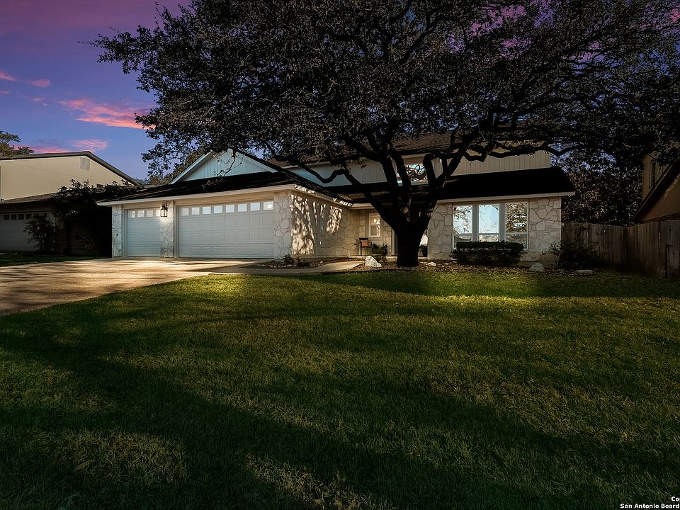 Welcome to 2122 Oak Peak. If you have been dreaming of owning a home spacious home, with a pool and spa, and a 3-car garage...let's make your dream come true!!! A Sitterle built home with versatile floor plan allows for family time and entertaining. This 4 bedroom, 2.5 bath will not disappoint! A roomy entry and the living room welcome you as you first walk in, the living room and family room display stylish wood floors and loads of natural light. The dining room and the picturesque window not only enhances the light but shows off the beautiful outdoor area and pool. The kitchen with its recently modern updates is jaw dropping! Elegant yet family friendly - natural stone countertops, newer appliances, and plenty of counter space for food prepping. Another picturesque window displays the pool and the many mature oaks. The family room boast an attractive wood burning rock fireplace for those cooler San Antonio evenings. The sizeable family room will be the hub of the home and is open to the kitchen allowing great family and friends entertainment. The master bedroom has ample floor space, has warm and inviting tones, attractive vanity areas, walk in closet and walk-in shower. Views of the great outdoors, sparkling pool and spa, and treed backyard are accessible from every room upstairs. The patio area has plenty of options for family fun! After some afternoon yardwork, take a dip in your inviting newly plastered and well cared for in ground swimming pool! Mature trees offer wonderful shade keeping utility bills down. Sprinkler system and Ring system will convey to the new owner. The owners have taken great care of this home: new exterior paint 5/22, new pool plaster HVAC American Standard 5-ton 15 seer with 10 year and 5-year warranties to new owners. Conveniently located to shopping, restaurants, medical and military bases. Walk to award winning NEISD Encino Park Elementary and Tejeda Middle school, minutes away from Johnson High School. Neighborhood amenities include onsite HOA manager, Olympic size pool for summer swim teams, sports courts, park and pool activities and volunteer opportunities for all ages. Come see why Encino Park is a great place to live.