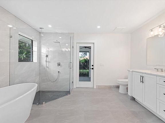 The best of both worlds! A Well-Established Neighborhood in the Heart of Wellington with NO HOA and the latest in Professional Home Design. The bright, open floor plan and vaulted ceilings create an expansive and spacious ambiance throughout the living areas. The master suite has ample room for a King-sized bed and large furniture with his/hers walk-in closets and a bathroom that looks like a two-page spread in a magazine! The other bedrooms offer enough space for King-Sized beds as well. Widespread Betterment: All new doors, trim, fixtures, tubs, showers, sinks, electrical panel, lighting, outlets, and switches. New front door, 1 new rear door, and 1 new rear slider. 2017 Roof, A-rated schools, the best that Palm Beach County has to offer! A perfect location, you will not be disappointed! Ready to move in right away. Flexible Closing Available!