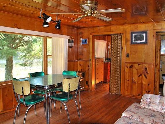 LONG LAKE COMFY COTTAGE - Decked out with knotty pine paneling and real hardwood floors! Anchored on 1+ acre with 150 ft. of frontage on an excellent fishery and a 373 acre all recreation lake. Very cool Living/Dining Room enhanced with a big picture window overlooking the lake and the Kitchen has retro metal cabinets in pristine condition. Lots of sleeping space with two bedrooms in the cottage and a heated bunk room in the garage that opens to the lake through a sliding glass door. Good privacy! Nicely maintained cottage in a pristine setting! An opportunity you won't want to miss!