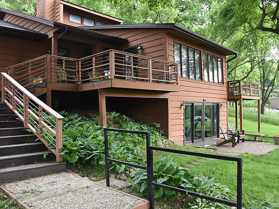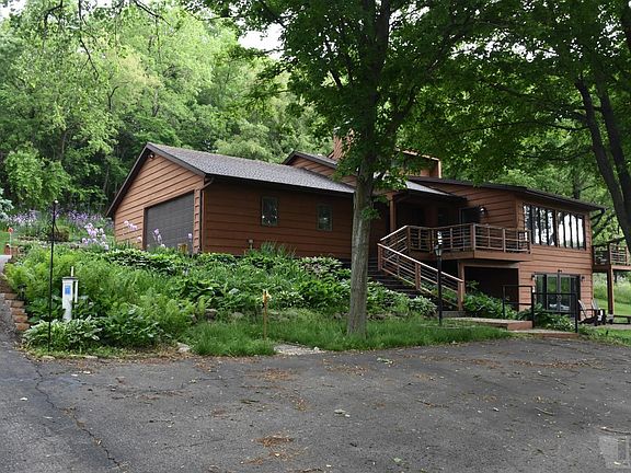 Watch the seasons change with spectacular views from every direction. You get river access from the front and views of timber, nature and hills from the back. Lots of entertaining space with the open floor plan and wrap around deck. The Kitchen is open to the dining room , with lots of natural light from the two sunrooms! The master bedroom features its own master bath, and the laundry is also located on the main floor. You will also find a separate full bath as well as a second bedroom on the main floor. Downstairs offers a family room, two additional bedrooms complete with egress windows, a full bath, and an additional non-conforming bedroom or storage area. There are lots of possibilities with this water front property, and sellers note the home is not in the flood plain. Call to schedule your showing today!