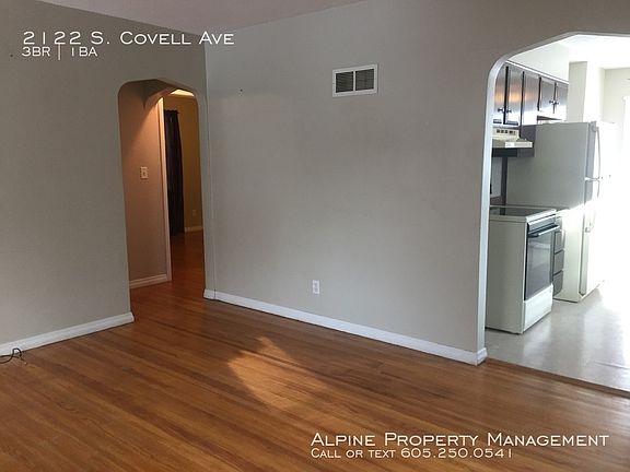 SCHEDULE A SHOWING ONLINE AT: showmojo.com/lh/1aaa011068 MOVE IN SPECIAL - $200 OFF FIRST MONTH'S RENT!! 6-9 MONTH LEASE OPTIONS Come and see this gorgeous 3 bedroom 1 bath home for rent at 2122 S. Covell Ave in Sioux Falls. The house has 2 bedrooms on the main floor, kitchen, living, and dining room. There is hardwood floor in the living room and both bedrooms. Downstairs is a partially finished basement with a 3rd bedroom, lots of storage, and washer/dryer provided but maintained by tenants. The home is fitted with central air/heat and is non-smoking and no pets allowed. The backyard is fully fenced in with a fire pit. The single stall garage has a long driveway for plenty of extra parking space.! Professionally leased and managed by Alpine Property Management 6 9 Month Lease Options!! Central Heat/Air Fully Fenced In Backyard Move In Special $200 Off First Month's Rent!! Non Smoking Outdoor Fire Pit Partly Finished Basement Single Stall Garage Stove Washer/Dryer Included