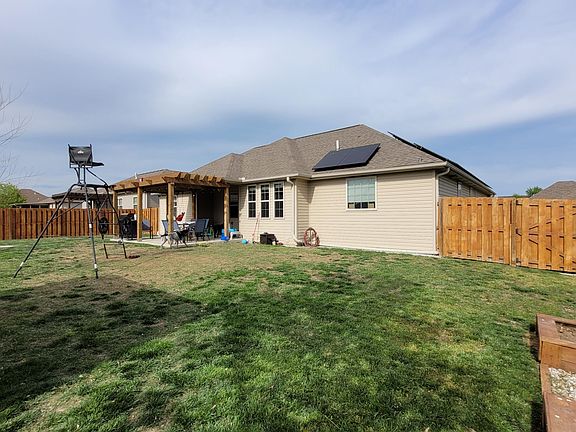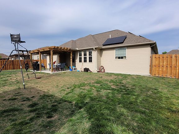 3BD 2BA newer contemporary home in Joplin, excellent location, 2 car attached garage w/ storage closet, beautiful pergola covered patio, storage shed, fenced back yard, granite countertops, jacuzzi tub in master bath w/ double closets & walk in shower, hardwood flooring in a lot of the home. This is a must see! Seller recently had solar panels installed, which with approved credit, could be transferred to the new owner.