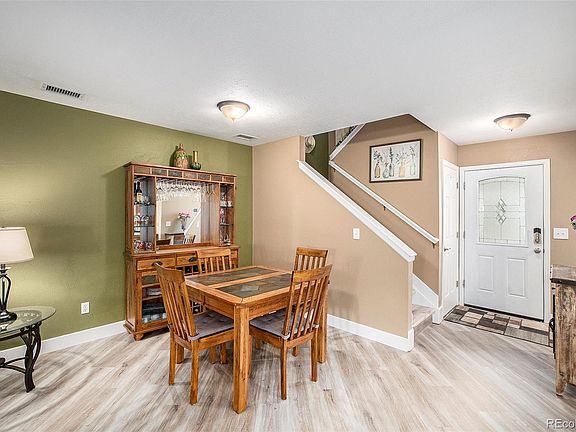 Welcome home to this amazing townhome on the 8th hole of the Heather Ridge Golf Course. From the moment you start to walk up to the home, you will appreciate the well-maintained community and the curb appeal of this 2 bedroom/2 bath townhome. The vaulted ceilings and open floor plan feature a completely renovated kitchen with beautiful, soft-close, shaker cabinetry, quartz countertops, new stainless-steel appliances, and stylish backsplash. Enjoy coffee on the walkout patio where there are views of the fairway and pond. The new flooring complements the neutral brick accents of the wood-burning fireplace – perfect for cozy evenings. A main floor bedroom, full bathroom and laundry closet round out the main level. The primary bedroom is located upstairs and is adjacent to a large loft area that is perfect for an additional living space or home office. The attached primary bathroom is completely renovated featuring quartz countertops, walk-in shower with modern tile finishes. Both bedroom closets feature Colorado Closet Systems. The furnace and AC have recently been replaced. Conveniently located just steps away from the community pool, walking distance to Utah Park and less than 5 miles away from major commuting, the Nine Mile light rail station, Iliff light rail station, with restaurants, shops and grocery stores close by.