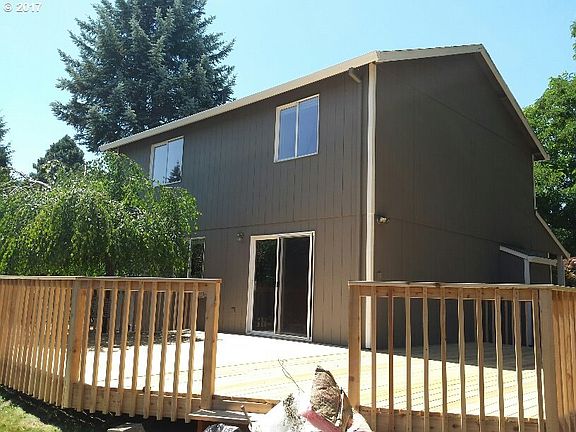 4 bed rooms & 2 and 1/2 bath rooms. private Flag lot but almost a quarter acre. features Laminate floors through out the home, granite tile kitchen counter tops,new stainless steel appliances. Spacious living area with gas fire place, dining room slider open to new huge deck, hot tub, great for entertaining, large fenced back yard, new interior & exterior paint, sky light in bath room.