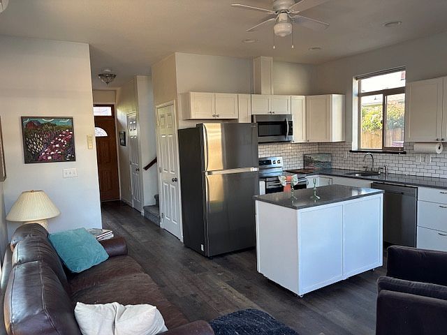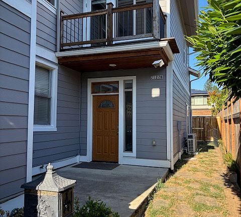 Built in 2018, this partially attached 2 level ADU has its own entrance, front and back patios and a deck off one upstairs bedroom. The downstairs has an open floor plan for the kitchen, living and dining room, as well as a washer and dryer and a half bath, along with plenty of storage. The upstairs has a full bath and 2 bedrooms across the hall from each other. The back patio is fenced for privacy. The ADU is very close to Mt. Tabor for beautiful walks in the park, biking and hiking. Lease can be monthly or 360 days