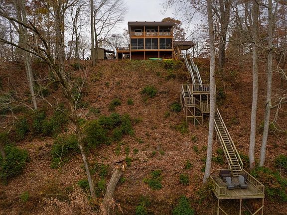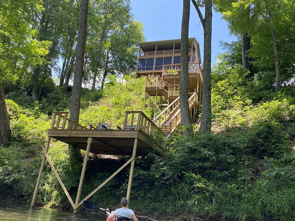 This property offers a private dock that leads directly to the water, allowing for easy access to boating and water activities. Enjoy the breathtaking views from the upper and lower back decks, with the added comfort of a screened-in bottom deck, perfect for bug-free relaxation. Outdoor amenities abound with an outdoor shower, a swimming pool, and a hot tub, all accompanied by a spacious deck and seating area, creating an ideal space for outdoor entertainment and leisure. Additionally, there is an outdoor fireplace with additional seating, providing a cozy ambiance for gatherings and cooler evenings. This property also includes an extra lot, complete with a septic tank, power hookup, and a convenient carport, offering ample space and versatility for your needs. Don't miss out on the opportunity to own this remarkable home with its desirable riverfront location and an array of outdoor amenities!