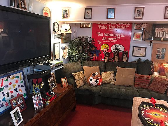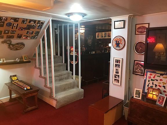 Quite unique, 2 story bungalow style one-family home with converted basement wine cellar located under front porch (now used as large laundry room with laundry folding area & built in storage shelves & cabinets); Fully finished basement continues under entire house with 7’ ceilings, wet bar with refrigerator, bar counter, vintage 1940’s beer tap, brass foot rail & glass door cabinets with mirror & storage cabinets all original to 1940 remodel. Basement also contains large sitting area and separate bedroom with en-suite bathroom & exterior access, plus a separate cedar closet & storage area with vintage 1940 era 6 ft built in ice chest with water supply lines to separate 1st floor kitchen water tap enclosed in dedicated porcelain wall mounted sink with drain. Stairs to 1st floor have mezzanine landing with driveway level access door before turning to lead up to 1st floor.