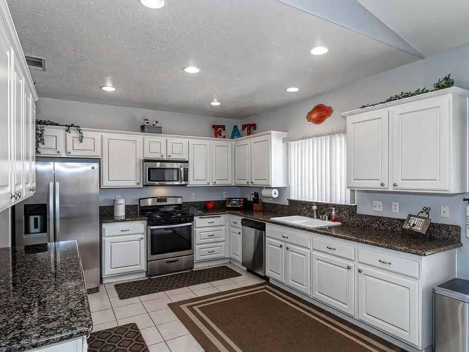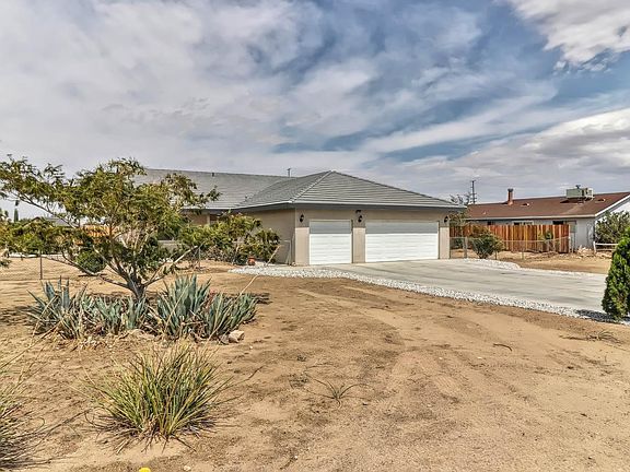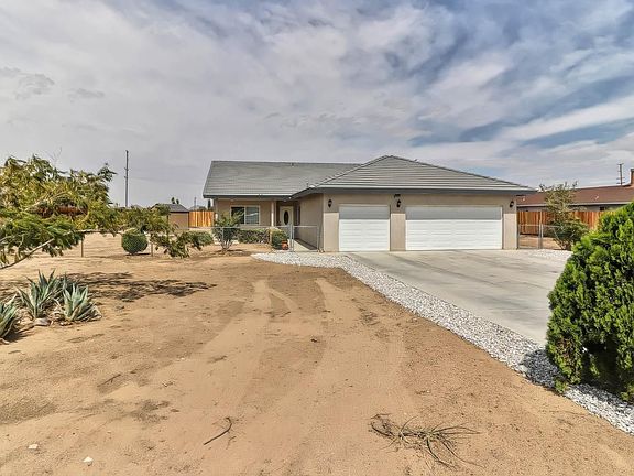 Beautifully upgraded Apple Valley home! Large spaces and high ceilings give this home an open feel. Kitchen has granite countertops, stainless steel appliances and plenty of cabinet space. Fireplace in the dining room adds a special touch of warmth. Three bedrooms are good sized and one has its own A/C unit. Bathroom has a door separating vanity area from the shower. Linen closet and additional cabinets in hallway. Indoor laundry next to the garage. The three-car garage is carpeted and has additional overhead storage racks, ample LED lighting and double garage door openers. This home features so many nice touches such as ceiling fans, LED lighting, security system and flat-tile roof. New fencing installed in the backyard, which also has a sidewalk around the whole house and a storage shed on a concrete slab. Lots of space to make it your own! This home is close to shopping, schools and restaurants.