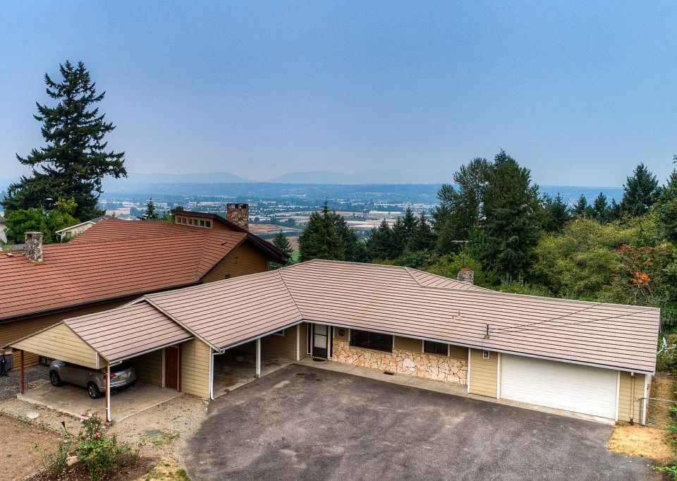 Convenient valley view rambler on over 1/2 acre! Easy access to freeways & everywhere. This one's a move-in ready gem with plenty of upside potential. Listed as 3 bed per county & septic approval. 1 bed w/shelves vs closet. 2 car garage & 3 carport spaces with huge driveway for additional parking. You'll love the private patio with fireplace & panoramic valley views! Ideal for business owners that appreciate quick access to everywhere. Large level lot with garden space for your own organics.