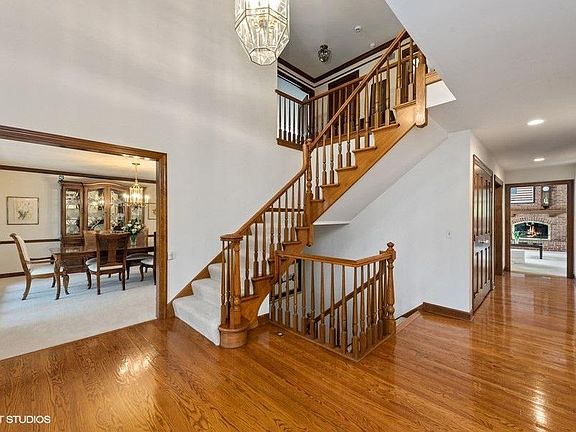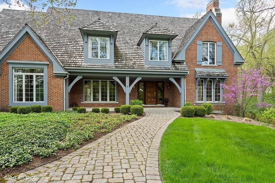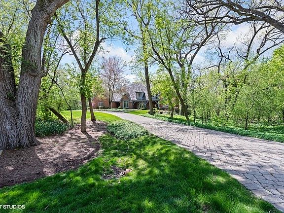 Executive home in Barrington Oak Meadows...tranquility amid the redbuds, yet so close to town on this 2.063 acres wooded lot! Curb appeal and character abound! The paver driveway leads to an all brick house with cedar trim, 6 bedrooms, 5.1 bathrooms with 5616 sq. ft. with a walkout lower level that adds another 2380 sq. ft (Total 7996 sq. ft. with approximately 7100sq. ft. of finished living space.) Gracious two story foyer leads to living room with fireplace, large dining room and study. The family room has another fireplace along with a vaulted and beamed ceiling with plenty of views of the gorgeous backyard. Nine foot ceilings except in foyer and family room with even taller ceilings. Large kitchen with center island, quartz countertops, all stainless steel appliances featuring a Sub-Zero refrigerator, Bosch dishwasher, KitchenAid double ovens with convection in the top oven. First floor bedroom with en suite bathroom and walk-in closet. Large mudroom with laundry area, freezer, utility sink with quartz and an entry to the front exterior. Upstairs there are four bedrooms, including the primary suite with double walk in closets, linen closet, whirlpool tub, separate shower and marble tile floors. The other three bedrooms with lots of closet space share either a Jack and Jill bathroom or the hall bath. The walkout lower level has another fireplace with gas logs and plenty of room for fun and games. The sixth bedroom is large and features an en suite bath. The unfinished storage area has plenty of built-in storage, a workbench and utility sink for all your projects. Zoned HVAC with Aprilaire humidifier and air cleaner. Water filtration system. The stunning yard is professionally landscaped with beautiful specimen trees, mature trees and a deck and patio creating a private back yard. A brick driveway leads to a 4-car side-loaded garage complete with heat and an electric car charger! There is lots of storage for all of your needs. Close to town, schools and train, but with a country feel. Just move right in to this beauty.