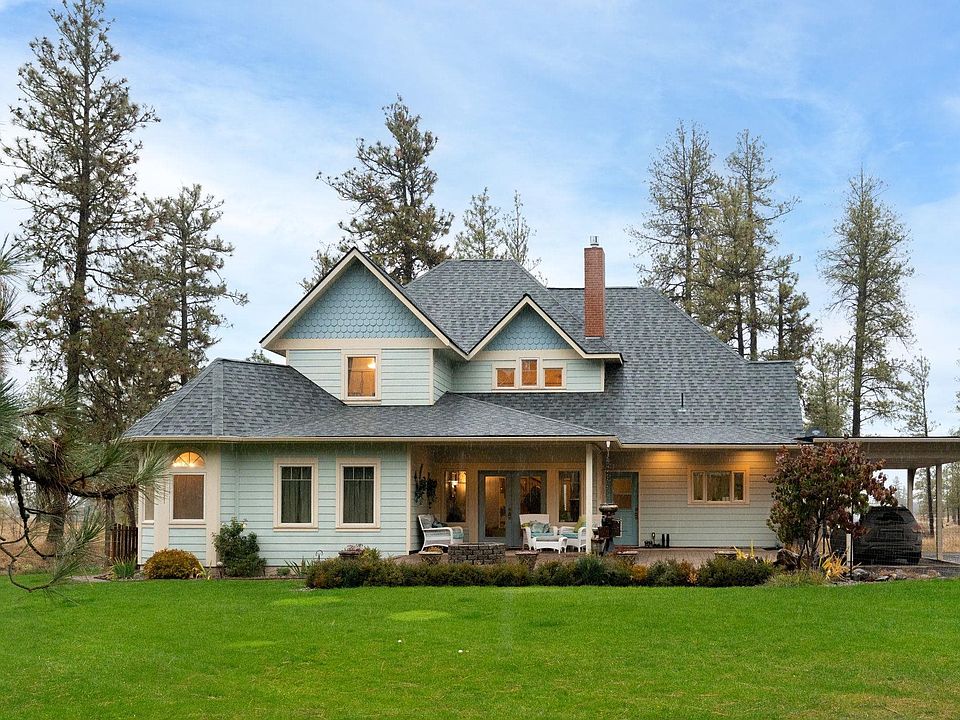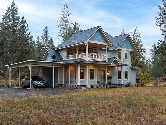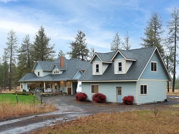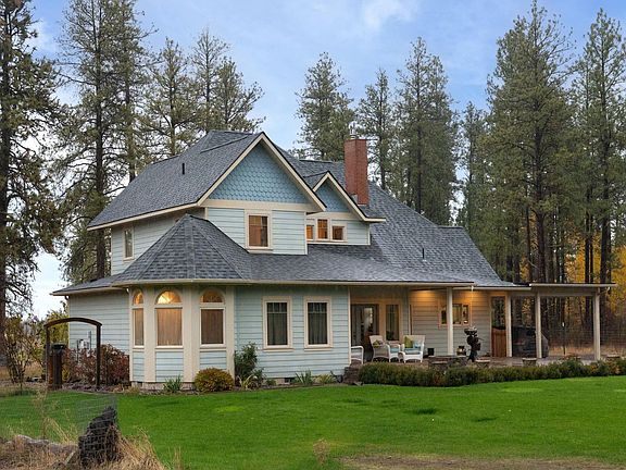 Experience timeless charm on 14.31 private acres with this beautiful Victorian-inspired home in Cheney. This 4 bed, 3 bath residence offers over 2,200 sq ft of warm, inviting living space. The main floor features a sweeping staircase, hardwood floors, and elegant millwork. Enjoy a cozy fireplace in the formal living room and views overlooking open meadows and mature pines. The kitchen includes granite counters, gas range, pantry, and all appliances. The primary suite features dual sinks, a walk-in closet, and a soaking tub framed by arched windows. Outside offers a shop, carport, RV parking, and storage shed. This property is the perfect blend of comfort and country living, just minutes from downtown Cheney and an easy commute to Spokane.