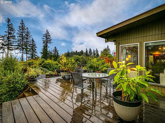 Beautiful one level home on a 5 acre property is completely surrounded by wildlife, and mountain views of Hood, Adams, & Helens. Feel completely secluded by trees and all kinds of landscaping/water features that circles the deck. This 2 BR + Office, 2 Bath with detached large garage, is located in the heart of Oregon city. Very well maintained with a Newer roof, interior painting, gorgeous granite flooring throughout living space and countertops to match. Ready for a new owner to enjoy!