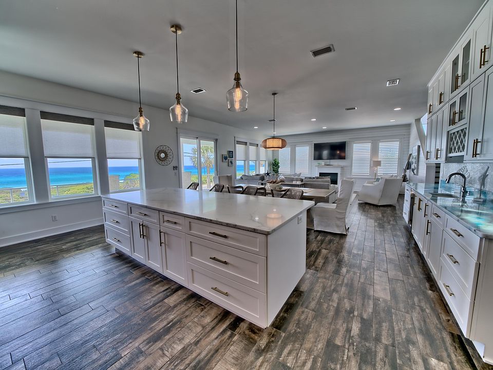 Near 30A~Stunning Custom Built Beach home w/ upgrades & views for miles and miles. Gulf front heated pool! This 5 bedroom 4.5 bath beach home w/ over 4,800 sq feet is perfectly located in Sunnyside, near 30A. Named ''Hidden Gem'' for a reason as the forever gulf views overlook 10 acres of pristine white beach & will never be developed. The construction details are impressive - solid concrete 1st floor, zip system waterproof construction, anodized aluminum pool & balcony railings & standing seam aluminum roof w/ straps & roof deck in excess of what code required. Solid wood cabinets & quartz throughout, elevator, and massive master suite will make you feel like you're at a 5 star beach resort. Huge 3 car garage with 9 outside spaces! Home is set up as Vacation Rental & performs very well.