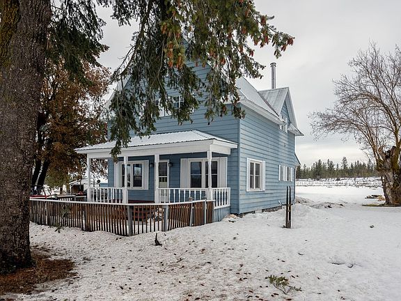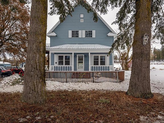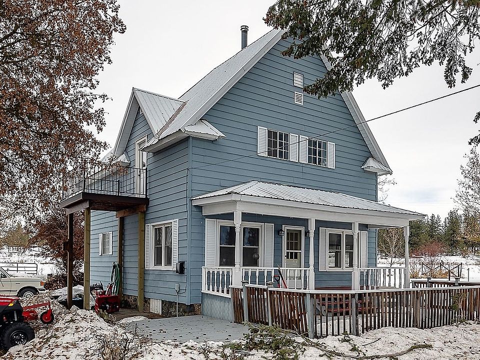 Fall in love with this 1903 farmhouse on 25 acres. A bit of new and old makes this a charming and unique home. Enter the living room with 9' ceilings w/punched tin crown molding, hardwood floors. Main floor; living room, dining rm, office, bath, laundry, kitchen, w/enclosed porch. Upstairs is 3 bedrooms: make either large bedroom, 13x14, or the 12x15 w/deck your primary bedroom; small bedroom is 11x12, the bath is 6x11, a new woodstove in foyer. More space in the basement; dry walled, cemented, new Wood Stove, freezer chest, newer hot water tank, and outside entrance. Bring your imagination. Unfinished Attic could make a beautiful office or play area one day. Paved driveways to house and to Shop. Outbuildings include garage, workshop (cemented, and enclosed cemented lean-to), storage, hay-barn, fencing, multiple spickets throughout property for water; bring your animals and your toys. Country living at its best; yet your choice of shopping in Spokane, Nine Miles, Suncrest.