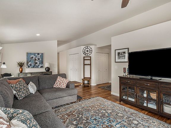- Breakfast Bar, Double Vanity, Fiberglass Stall Shower, Kitchen Island, Primary Downstairs, Solid Surface Counters, Vaulted Ceiling(s)