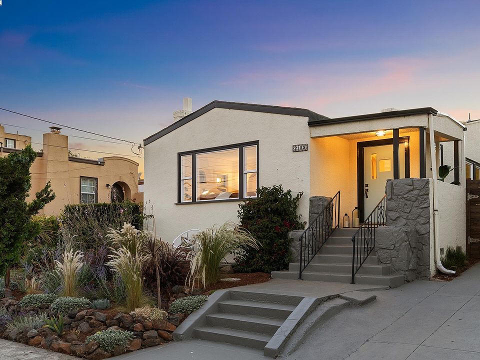 The best of California living awaits in this fully updated 3BR/1BA bungalow in Oakland’s Bella Vista neighborhood. Set back from the street, a Mediterranean garden, covered porch, and classic stoop welcome you to the 1263 SQFT home. The bright living room has a large picture window, and two more windows flank the vintage statement fireplace original to the 1920 home. Two artistic niches are built into the fireplace and the wall to display your treasures. Gorgeous hardwood floors span the home and into the sunny dining room which adjoins the fabulously remodeled kitchen. With beautiful quartz counters, a wall of high-end cabinetry, and a large farmhouse sink, the kitchen is a jewel-tone dream. A laundry area is nearby, and a flexible room offers space to sleep, work, or play. In another wing, two light-filled bedrooms with multiple closets and a renovated full size bath enjoy privacy and quiet. Central air-conditioning keeps the home cool, or you can enjoy time outside in the expansive backyard with a patio, mature landscaping, and maintenance free turf. A long tandem driveway allows for multiple parking spaces, and the home has an easy commute via 580 or BART. Lively Lake Merritt is nearby for dining, shopping, and walking the dog.