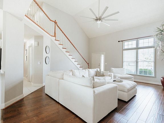 Enjoy lakefront living in McCutchanville’s desirable Eagle Crossing North! This beautiful home features an open layout with vaulted ceilings, hardwood floors, and a cozy gas fireplace. The remodeled kitchen boasts granite counters, custom backsplash, Ruvati sink, and all appliances—including a new dishwasher. The main-level primary suite offers peaceful lake views, tray ceiling, and a jetted tub in the en suite bath. Upstairs you'll find two spacious bedrooms with a Jack-and-Jill bath and bonus attic space. Relax or entertain on the covered deck with fan, string lights, and misters—overlooking the lake and brick patio. A true backyard retreat! Best part--You can literally drive your golf cart to Oak Meadow!