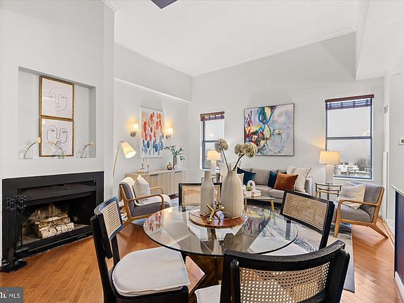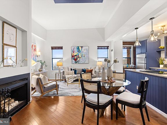 Enticing Kalorama PENTHOUSE on highly desirable stack at The Brighton! Come home every day to this delightful block of coveted California Street! Spanning over 1,000 square feet, life in Penthouse G5 offers residents 2 spacious bedrooms, 1.5 baths, extra high ceilings & skylights in living room, marvelous sunset views of National Cathedral, and a wood-burning fireplace. There is so much to love here including an open floor plan with large kitchen featuring stainless appliances, freshly repainted cabinets, granite countertops, new hexagon tile floor, island & ample storage; wood floors in public rooms, office nook, double-pane windows, new pendant lighting and sconces, new paint throughout and linen closet. Bedrooms each accommodate a king-sized bed and the main bedroom has a walk-in closet. Both the full bath and the half bath have been tastefully renovated. The Brighton is a 57-unit Beaux Arts gem with elegantly manicured courtyard entry. Pet & investor friendly (ask agent for details). A storage room is included with the apartment. Enjoy a cocktail on the recently-updated roof terrace with monument and cathedral views! The condo fee includes all utilities (heat/AC, electric, water, sewer, cable/internet/HBO) and laundry on each floor.