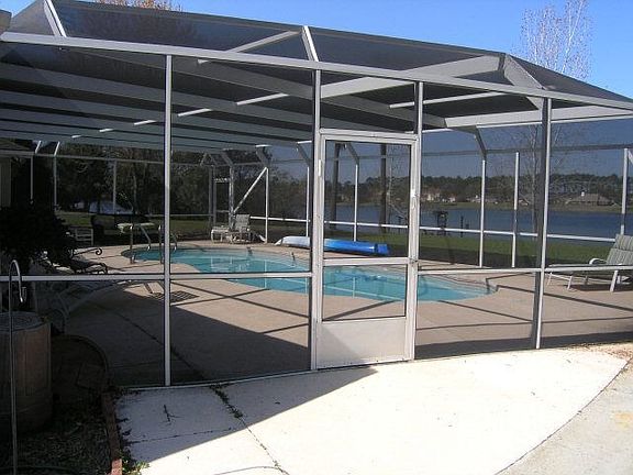 A well maintain home on oversized lot on the big lake in desirable Nottinghill. Home has screen lanai over a saltwater pool overlooking the big lake. Lake frontage has bulkhead with two docks and great views. Yard landscaped with flowering trees, orange trees and crape myrtles. Family room has large wood burning fireplace. Large Florida room on the rear for easy access to the pool. Spacious kitchen with breakfast nook, formal dining room and carpeted and vinyl floors.. The master bath has his and hers walk in closets, a whirlpool tub, separate acrylic shower, double vanity and enclosed water closet. A home warranty is offered.