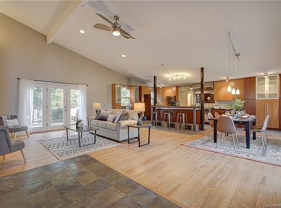 Live in the country and be walking distance to Main St. in Davidson! A rare opportunity w/ 5.6 secluded acres, yet right in town! Footpath from driveway connects directly to N. Faulkner Way giving access to sidewalks to town. This updated mid-century modern home has a true detached apartment/in-law suite, heated inground pool, and huge garage/workshop. The main home boasts a large open living area w/ vaulted ceilings and an abundance of natural light. Large master has His & Hers closets and updated bath. Upstairs is a second master w/ updated bath plus additional bedrooms. You'll love cooking on the commercial gas range or entertain by the pool & outdoor fireplace while grilling on the built-in grill. Need extra space for the in-laws? Detached from the main home is an apartment w/ bedroom, living room, kitchen, laundry & bath. Huge garage/workshop for your toys and hobbies! If you've been looking for a mid-century modern, in-law suite, workshop, or acreage and close to town this is it!