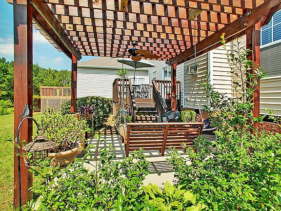 Great open layout, engineered Tiversa vinyl planks on 1st floor, carpet upstairs, huge master walk in closet, granite counters in kitchen, pantry, walk out from breakfast area to gorgeous fenced back yard, rear deck overlooks the greenbelt, lovely sitting area underneath pergola, small pond. Great amenities, 2 pools, clubhouse, fitness center, tennis, playground and 20 miles of walking/biking trails.
