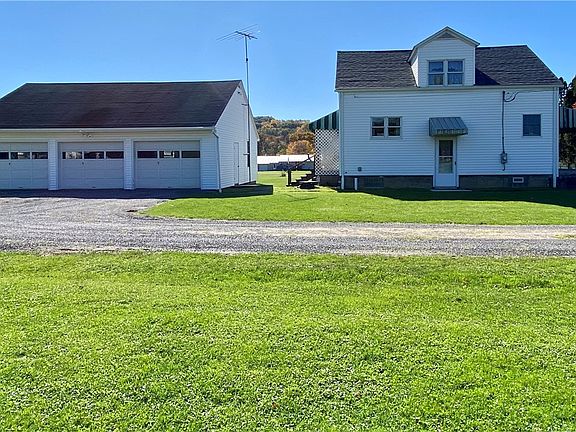 Welcome home to this 2 bedroom bath & a half house on a gorgeous, flat 3.21 acre lot in Sunnyside! The main level is comprised of a spacious kitchen w/pantry & large living room that is open to the dining room. Ample storage space in the 4 large cedar lined closets in the bedrooms & the 2 additional closets in the upstairs hallway & bathroom. Laundry hooks up on main level as well as in the basement. Covered front porch! Plenty of parking in the 3 car detached garage w/storage space above. There is potential for the new homeowner to tap into free gas. No zoning! Endless possibilities w/this amazing lot!