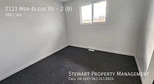 AVAILABLE JANUARY 1ST 2025 INTERNET - Need to get a wifi stick. No rogers or any other Wi-Fi providerR AVAILABLE - There is no fibre cable structure here to support Wi-Fi fibre (high speed internet), activities like Zoom calls or streaming movies will not be possible. Welcome to 2123 Mer-Bleue located in the eastern part of Ottawa, in an area known for its suburban feel and natural beauty. Features: 1 bedrooms 1 bathroom In- unit laundry Parking available HYDRO EXTRA NOTE - ONLY BELL WIFI - ONLY 5 MBPS SPEED. This charming 1-bedroom lower unit offers comfortable living in a fantastic location. The unit features a spacious and cozy bedroom, perfect for relaxation and rest. Carpeted floors throughout add warmth and comfort, while natural light floods the space, creating a bright and inviting atmosphere that makes it the perfect place to call home. Location: Steps away from beautiful parks and walking trails Countless schools and community centers within the area Closed to various local shops, grocery stores, and dining options. Family-Friendly neighborhood Criteria: All pets considered; small pets preferred Non-smoking unit/premises One year lease minimum First and last month rent required This property is managed by Stewart Property Management