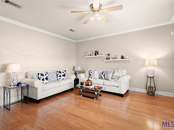 Very well maintained Townhouse in gated community on LSU bus line. Wood floors in living room, ceramic tile in kitchen. Powder room downstairs for guest. Upstairs is two full bedrooms with two full attached bathrooms. French doors leading to balconies for both upstairs bedrooms. All appliances stay(washer and dryer included). Fully fenced back yard has large patio area. Two assigned parking spaces. Grab this townhome today!