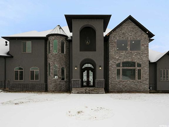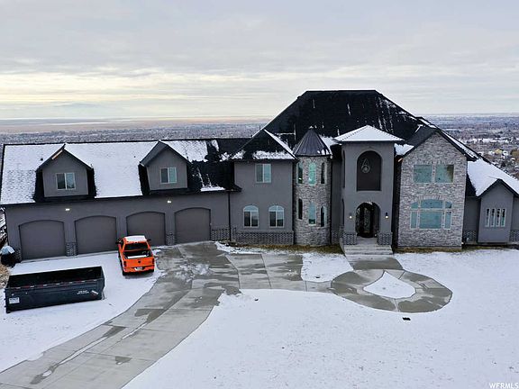 Look no further! This beautiful Farmington home has everything you could want and MORE! Perched on top of a 2.65-acre lot with sweeping views of the valley. Head up the walkway through the large double front doors, into a living space flooded with natural light. The living room boasts lofty ceilings, and incredible floor-to-ceiling windows to make the most of the amazing views. This home features beautiful modern touches, like the metal center spiral staircase and glass railings while still maintaining a "homey" feel. Gorgeous custom finishes in the kitchen, that everyone will love. The views don't stop! Every room upstairs also features large windows, so no matter where you are in the home you'll get access to the amazing scenery and natural light. The master bedroom has several fantastic features, like a large jetted tub, ceiling height steam shower, and a large walk-in closet. The rest of the bedrooms don't fall flat at all, with plenty of space and large walk-in closets as well. The basement is a show-stopper! It checks all the boxes- inground indoor pool & hot tub, workout room, theatre room, and full kitchen, to name a few! Basement could also be used as a mother-in-law apartment if you desire! You need to see this home for yourself, you won't find anything else quite like it!