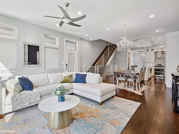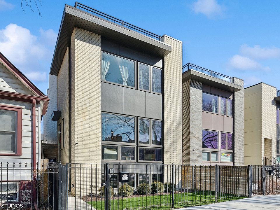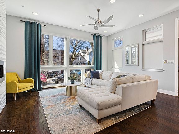 Welcome to this gorgeous 4-bedroom, 3.1-bathroom home with a two car garage located in desirable Logan Square. Inside, oversized windows and high ceilings flood the home with natural light. The kitchen features Jenn Air/Sharp appliances, quartz countertops, a waterfall edge island, double stacked cabinets, and a marble backsplash. Two spacious living spaces on the main floor provide versatility for gatherings, while the large lower level rec room, anchored with a wet bar, is perfect for entertaining guests. An additional bedroom and bathroom in the basement offer flexibility for guests or extended family. The primary bathroom has a jacuzzi, double vanity with quartz countertops, heated floors, rain head, body sprays, and porcelain tiles. Additional features include a gas fireplace, wired for sound, custom built-ins, tray ceilings, Nest Thermostat, plenty of storage and closet space and plumbing for second laundry in lower level. Outside, features 3 outdoor spaces: the back deck, gorgeous roof deck with trex decking & pergola, and a nice yard. Located in close proximity to the Blue Line, Bloomingdales Trail, and an array of restaurants and coffee shops, this home offers an unparalleled lifestyle in one of Chicago's most sought-after neighborhoods.