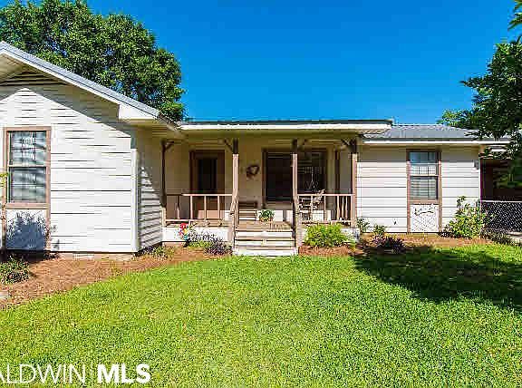 The quaint characteristics of this cozy Loxley home will just delight you! Your Living Room offers rustic Exposed Rafters, Creative Ceilings, Custom Shiplap Walls, and Wood-burning Fireplace with Large-Stone Hearth. Leading out of Living Room is your spacious Bonus Room featuring all Hardwood and Custom Built-in Shelving. With Great Tile Floors, Kitchen also has extensive Cabinet space and looks into Dining Area. Both your Covered Front Porch--which is perfect for Porch Swing--and your Hardwood Back Deck are ideal for enjoying the large Fully-Fenced yard. Plus, Metal Roof adds such an aesthetic quality! And don't forget about your many Storage opportunities: plenty of closet space inside, plus extra room in Attached Carport Building and Detached Storage Building. And Location here is optimal! With easy access to I-10, you are also only a couple minutes' walk/drive to Family Dollar and other local stores including Burris Farm Market! Come see in person how this place is right for you!!