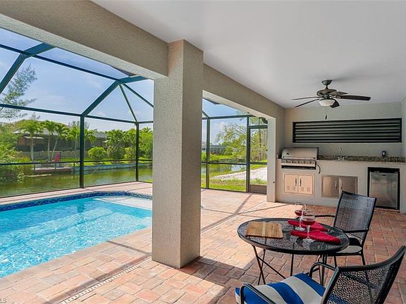 H.16184 - Here's your chance! This beautiful two-year old gulf access home features a light and airy open concept split floor plan with 90 degree corner sliders opening to a large lanai with summer kitchen and sparkling pool with sun shelf, all overlooking the water. This is indoor/outdoor living at its best! The interior features large tile floors on the diagonal everywhere, tray ceilings, chef's kitchen with quality soft close cabinetry, granite counter tops, glass mosaic back splash, huge island, stainless appliances, pantry and ample dining area. The master and en-suite bath have sliders to the lanai, his/her walk-in closets with wood shelving, private water closet, dual sinks with granite tops, walk-in shower with custom tile work and glass enclosure, and a stand-alone modern soaking tub. The guest baths have wood cabinetry, granite tops with one serving as a pool bath. Laundry also has quality cabinetry and granite tops. There's an outdoor storage room for pool toys and boating and fishing gear. Quiet family neighborhood with quick access to Veterans Parkway and all that the area has to offer. This amazing home won't last long in this market. Call for an appointment today!