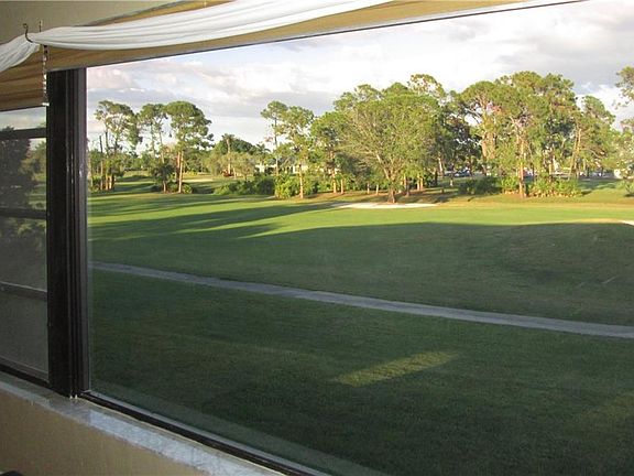 Appreciate the spectacular view & privacy in this 2275 SF condo with GARAGE. Personal STAIRLIFT available for easy access. Prepare a feast in your big & bright kitchen while entertaining your guests in the large dining room overlooking the golf course. Adjourn to the sunroom for a glass of wine in your den while watching the golfers on the 11th Fairway. Beautiful view from Living Room, Sunroom, Kitchen, Dining Room & Master Bedroom. Spacious. TWO MASTER SUITES plus a large guest room with attached half-bath. Well-maintained. Refinished kitchen lots of cabinets w/ Solid surface countertops. Renovated Baths. Screened-in entry with private lanai. 55+ friendly community - strong reserves -- screen-in heated pool overlooking Palmetto Pine Golf Course. Enjoy a community party or card game in the Private Clubhouse which has restrooms, kitchen, bar area. Complex newly painted. Bocce Court. Situated on nearly 5 acres of beautifully landscaped grounds, only eight 4-unit buildings = 32 different floorplans. Convenient to VETERANS & CHIQUITA, Shopping, Entertainment, Airports, Restaurants & Beaches!
