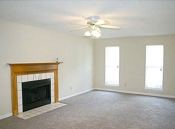 Spacious 3 bedroom / 2.5 bath with cozy front porch and attached 2 car garage. Carpet throughout, living room features fireplace and ceiling fan. Kitchen complete with breakfast nook, fridge, electric oven / range and dishwasher. 3 bedrooms located upstairs, each with ceiling fans. Master suite features high coffered ceilings, walk in closet and large master bath. Back patio overlooks a lovely wooded yard. Central Air, gas hot air. *No Section 8* *Pets are welcome, no aggressive breeds.* This property allows self guided viewing without an appointment. Contact for details.