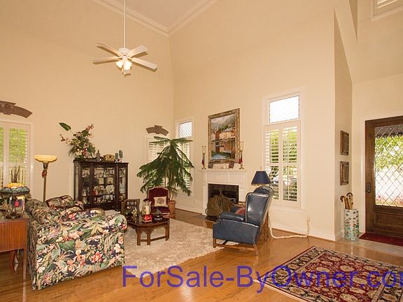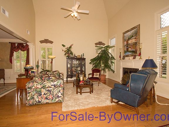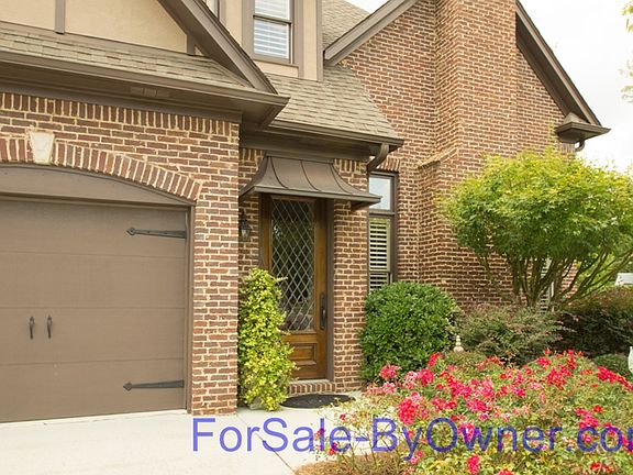 5 bedrooms, 3.5 baths. 4-sides brick. Main-level master and two-car garage. Fireplaces in living room and family room. Hardwoods. Granite/stainless kitchen. Plantation shutters. 9'/18' ceilings. Screened porch. Large, flat, fenced backyard. Extensive landscaping. Private, wooded back view. Cul-de-sac. Gated community. Sidewalks. Walk to Riverchase Elementary.
