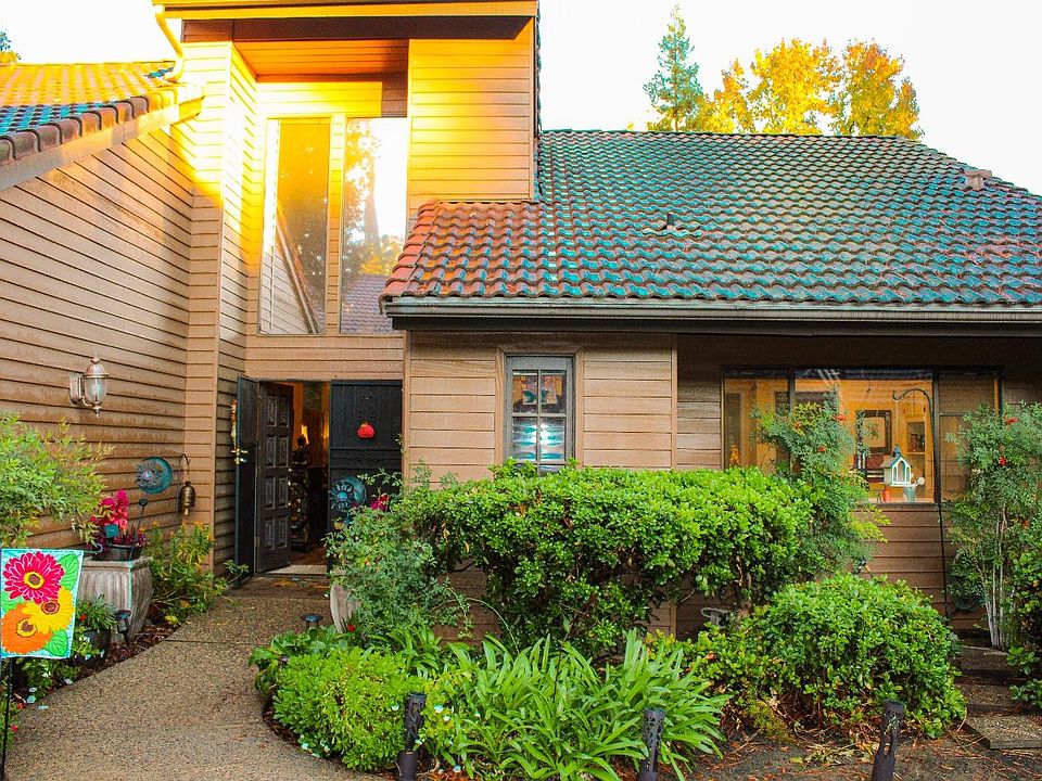 Exceptional free standing unit nestled in the rear of woodsy gated London Commons. This home sits in the furthest back corner of the development and is very quiet. All new flooring, New landscaping, Tile roof. High vaulted ceilings make this home light and bright. Oversized great room, adobe fireplace, large formal dining room with french doors to a private patio, an alcove bar area plus a separate den or ideal as an office. Spacious kitchen with nook, pantry, canned recessed lighting and tile flooring. Lovely master suite has walk-in closet, private patio and spacious bath. 2nd bedroom is nicely sized and hall bath has been remodeled. Oversized 2 car garage. Enjoy the pool and clubhouse. Close to great Northwest shopping and restaurants!