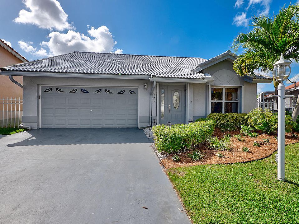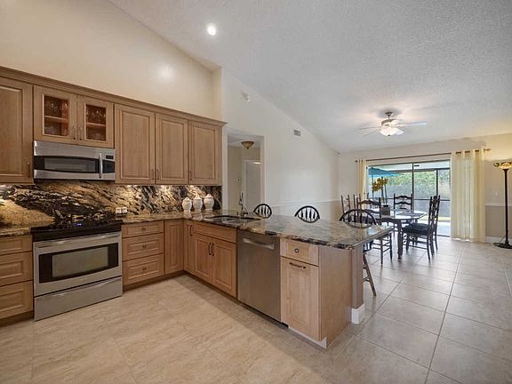 Absolutely move in ready home in a fabulous community! Newer tile throughout the entire home! Renovated kitchen with granite countertops and stainless steel appliances. Renovated bathrooms. Newer roof. Enjoy the tropical haven from a spacious screened patio with long views of a large canal. This home is situated on an oversized lot and in a cul-de-sac.