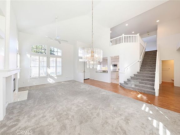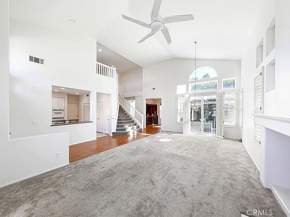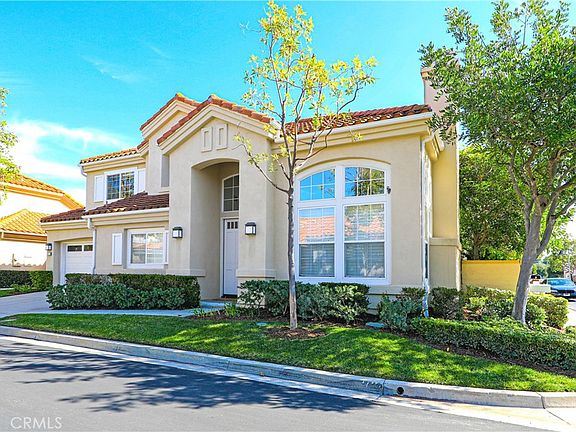 Introducing this exceptional Villas 2 floor plan nestled within the esteemed 55+ Palmia community in Mission Viejo. Situated on a serene cul-de-sac lot, this residence offers convenient access to the community clubhouse, boasting amenities such as an 18-hole putting green, swimming pool, Pickleball and tennis courts, bocce ball, and much more! Welcomed by the guard-gated entrance, residents and guests are greeted by meticulously manicured streets and lush landscaping. Upon entry through the grand double doors, you're greeted by a spacious two-story layout. The expansive great room features soaring vaulted ceilings, a cozy fireplace, and an abundance of natural light, seamlessly blending the living and dining areas. Accessible from the dining area, step out onto your private patio, perfect for outdoor relaxation. The kitchen showcases crisp white cabinetry and ample storage space, catering to all culinary needs. The main floor primary bedroom boasts an en suite bathroom with a dual vanity and a generously sized walk-in closet. Additionally, a main floor den or office and a guest bathroom offer flexibility and convenience. Ascend to the second floor to discover a sizable bonus room, a second bedroom, and another full bathroom. This home has new carpet, new paint and fabulous new flooring in each bathroom. Palmia homeowners also enjoy exclusive membership to Lake Mission Viejo, offering opportunities for boating, beaches, concerts, and picnicking. Nearby, you'll find an array of shopping, dining, and entertainment options.