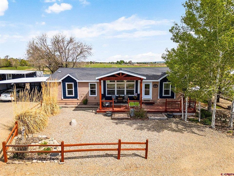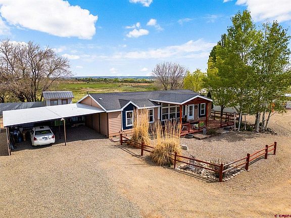 Experience serene country living just minutes from town with this beautifully maintained 3-bed, 2-bath manufactured home on 4.2 acres of prime Cortez pastureland. Tucked off the county road by a long, winding driveway, this property offers privacy and peace while keeping you close to all the conveniences and outdoor adventures that Montezuma County has to offer. Inside, you'll find 1,560 square feet of comfortable living space. The inviting living room flows seamlessly into the open kitchen—perfect for both entertaining and daily life. Quality appliances, ample cabinetry, and a generous island make cooking a pleasure. The home is equipped with a central furnace and pellet stove for year round comfort. The master suite is thoughtfully set apart from the other bedrooms, offering a private retreat with its own bath. Both bathrooms feature modern fixtures and functional layouts, making this home move-in ready. Step outside to a well-equipped property ideal for those looking to enjoy a rural lifestyle. Outbuildings include a powered shop that is 30x40 with 12 foot walls and a 12x12 roll up doors all of which is insulated, storage container, garden shed, carport, and a pole barn—great for equipment storage, animals, or general use. While there is no irrigation water currently, the systems are already in place should water become available. The 4.2 acres of fenced pasture are perfect for horses, livestock, or youth show animals, with plenty of space to expand your homesteading dreams. Whether you're grazing animals or enjoying wide-open views, the land offers flexibility and opportunity. Located just outside Cortez, you’ll have quick access to a wealth of outdoor recreation. Spend weekends fishing or boating at McPhee Reservoir, hiking in the nearby San Juan National Forest, or exploring the scenic towns of Dolores and Mancos. Year-round adventure is within reach—from summer trails to winter skiing in Telluride or Purgatory. This property blends space, comfort, and location—ideal for anyone seeking a quiet, capable home base in the heart of southwest Colorado. Schedule your private tour today and discover all this unique property has to offer.