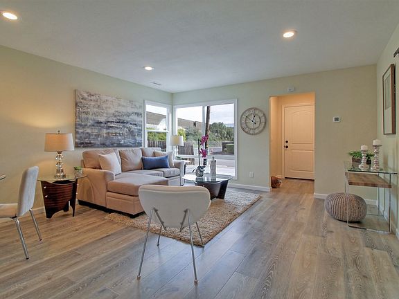 Gorgeous interior remodel down to the framing. Home has open floor plan with remodeled kitchen and bathrooms, dual pane windows, upgraded flooring, central heat & AC, new electrical, recessed lighting, copper plumbing lines and interior/exterior paint. Attached garage w/new garage door and washer/dryer. Huge park like backyard with new large, solid Redwood deck, multiple fruit trees and area for entertaining/gardening. Side access for parking of boat/RV or room for additional structure. All appliances stay. Convenient location to BART, all freeways, schools and amenities. Roof 2 year certification. Must see!