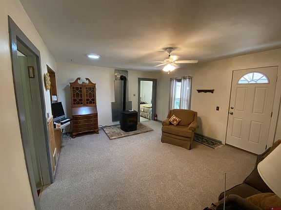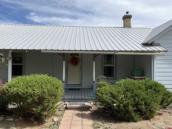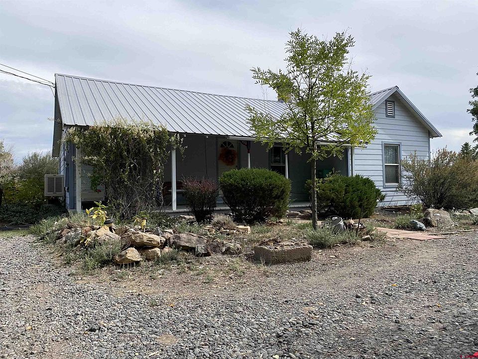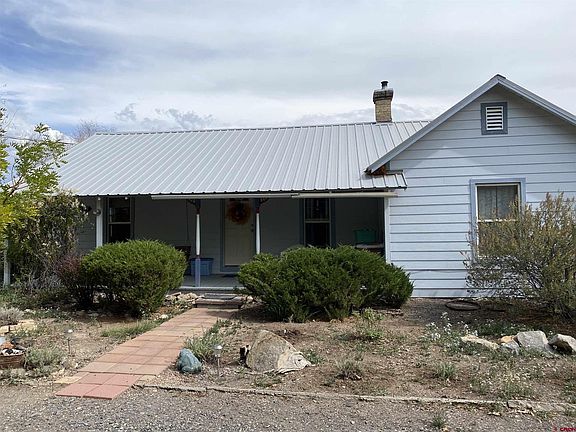 Quaint 3 bed/1 bath Farmhouse tucked away near the end of a quiet road on a half acre lot with mature trees and landscaping. Nice fenced dog run, garden area, and plenty of parking. The home is in great shape and has vinyl windows, a metal roof and concrete siding for low maintenance. There is a pellet stove for comfort in the winter and also a nice sunroom addition. Covered front porch and concrete back patio. Storage sheds, fruit trees, and room for some animals with views of the San Juans. Enjoy the solitude of the country.