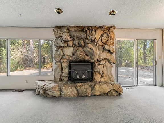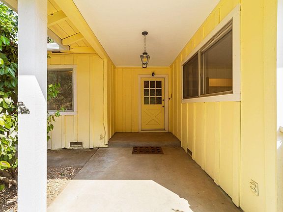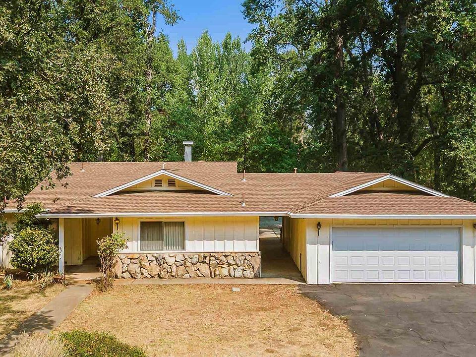 Classic Single Story Ranch Style Home. With a pale yellow exterior, white trim and rock accents, this home exudes a sweet warmth and charm.Tucked off the road with a circular driveway, there is a private feel, plenty of parking and easy access. Inside, the large living room is open to the dining space and features a wood burning stove set into a custom rock wall with a slider on one side and a large picture window on the other, showcasing a view of the backyard and bringing the outdoors in. The kitchen is light and bright with plenty of cabinet space. Off the kitchen is the laundry room which has a sink as well as a door leading to the breezeway, making a perfect mudroom set-up. The master bedroom is a nice size and has an attached bathroom with a shower. On the other side of the hallway are 2 additional bedrooms as well as a bathroom with a tub/shower combo. The bathrooms feature vintage colors and tiles and the classic layout of the home lends itself to making this home your own by playing up the vintage feel or moving ahead with a more modern approach. There is a 2 car garage accessed from the home via a breezeway and attached to the garage is a shop. The large, flat back yard abuts the seasonal creek and is a blank canvas for you to create the yard of your dreams. Could this be your Home Sweet Home? Come take a look today.