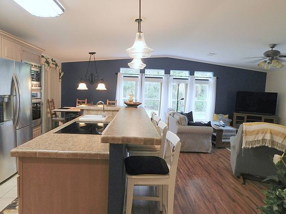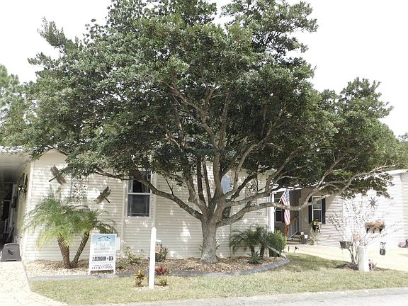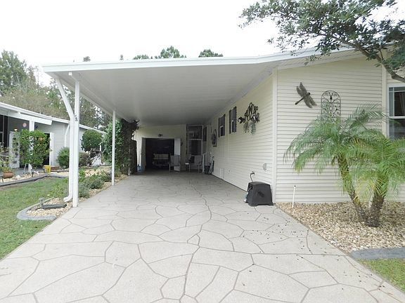This lovely 2 bed, 2 bath home has a den and 1,600 square feet of living space. Beautiful curbing and landscaping surround the home which is situated on a large lot with an over-sized carport. The home has been recently painted throughout and is impeccable and exquisitely decorated. Step inside to see the large, open floor plan. The home features crown molding, textured walls and laminate flooring in the main areas while the kitchen, bathrooms and laundry room have tile flooring. The bedrooms have newer carpeting. The kitchen is resplendent with beautiful ambient lighting, a tiled back splash, plenty of cabinets and lots of counter space. Bosch stainless steel appliances including an electric cook top and a utility sink help to polish off the elegant kitchen. The home has charming pendant lights, a counter top bar and beautiful windows with a view of the large back yard. Most rooms have calming colors and beautifully accented walls. The tiled lanai is at the rear of the home and is a perfect spot for your morning coffee or cup of tea. Sit back, relax and admire the abundant wildlife that frequents the back yard. The master bedroom has a large walk-in closet with an organizer, ceramic tile flooring, a garden tub, double vanities and natural stone back splash and a large tiled shower. The guest bath also has ceramic tile flooring, an updated vanity and a tub/shower combination. The home also has a den if you must work and it a pull-out sofa for overnight guests. The hallways are wider than most homes and all doors throughout the home are elegant 2 panel arch plank doors. This home has the sellers masterful touch throughout and is one of the premier homes on the market in the community. There's even a separate laundry room with additional shelving space if needed. The lot lease is $844 and the home is being offered turnkey. The AC is approximately 2 years old. This glamorous home is listed for $179,500.00. Why not make it yours today! Fees include the amenities listed: two pools, two hot tubs, fitness center, tennis courts, bocce ball courts, pickle ball, horseshoes, clubhouse, 24 Hour Manned guarded gate, lawn mowing and trash pickup. This community also offers 2 Golf courses Championship Course and Executive Course. See pro shop for pricing. This 55+ community has an association approval process and applicants must pay for and submit to a background check, credit check and provide financial documentation and be approved to live here.