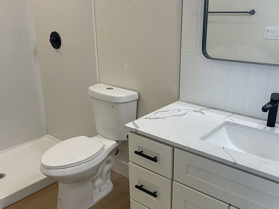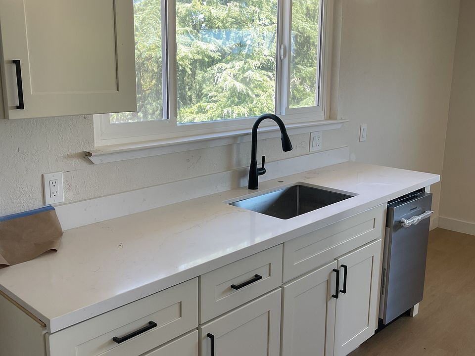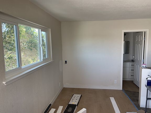 Beautiful and newly remodeled ADU with views in Springtown! Designer-inspired upper level unit with private entrance. Private bathroom with walk-in shower. New throughout! New paint, laminate flooring, LED lighting, dual paned windows, kitchen cabinets and counters, and stainless appliances include refrigerator, dishwasher, electric range, and sink. Combination washer/dryer unit. Air conditioning, and heat pump. Living space estimated at 410 s.f. On street parking.