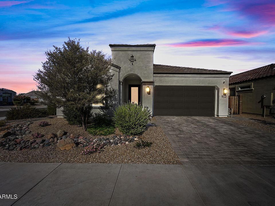 Step into luxury with this stunning 4-bedroom, 3-bathroom home in the sought-after gated community of Stone Butte, offering 2,290 sq. ft. of meticulously designed living space on a desirable corner lot. Surrounded by breathtaking mountain views, this home features a chef's kitchen with a massive quartz island, staggered cabinets with glass display, stainless vent hood, gas cooktop, a wine rack, and a wine fridge.