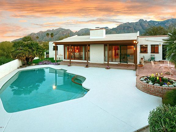 Spectacular mountain views with some city lights surround this well maintained 4 bedroom territorial style home located in Catalina Foothills Estates in the northern foothills of Tucson Arizona. Enjoy privacy and serenity in this natural desert setting, while minutes away from La Encantada Shopping Center, many fine restaurants and excellent District 16 schools. Newly remodeled kitchen has cherry cabinets, quartz counter tops and stainless steel appliances. All 3 bathrooms remodeled. Super Saltillo tile floors, as well as other upgraded tile flooring. Additional upgrades include doors, ceilings and windows. These features blend a warm and traditional style with a contemporary feel.