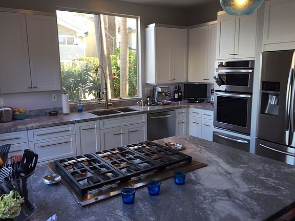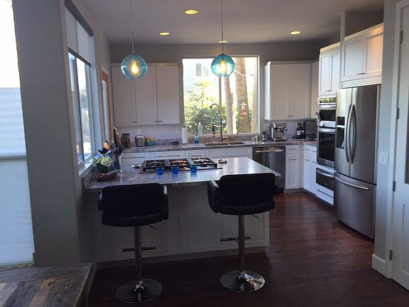 Rare find in Cardiff by the Sea. Stunning ocean and sunset views from this unique three bedroom Twin Home just minutes from the beach. The main level has vaulted ceilings where the kitchen, living room with a fireplace, and dining area are located. The second level is the spacious master suite and deck with the full ocean view. Two more bedrooms and full bath are located on the lower floor with their own patio area. Home was renovated in 2014 with new kitchen, new oak wood floors, doors, etc.