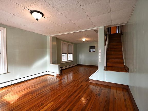 This West-Bethlehem end-unit home sits on a quiet street and welcomes you with a roomy covered front porch. Walk inside to the glistening living room and dining room open-concept area with gorgeous wood flooring. A sizable kitchen and sunny utility or mudroom round out the first floor. The bright primary bedroom and two more bedrooms--all with wood flooring underneath carpet--are on the second floor. Also upstairs is a nicely tiled full bathroom with a clawfoot tub. A full-finished basement is perfect for a family room or rec room. The fenced-in backyard has enough space to make gardeners, kids, and dogs happy. Plus, a detached two-car garage as well as on-street parking provides plenty of space for guests. Upgrades include a new roof in 2021 and brand-new laminate flooring in the utility room.